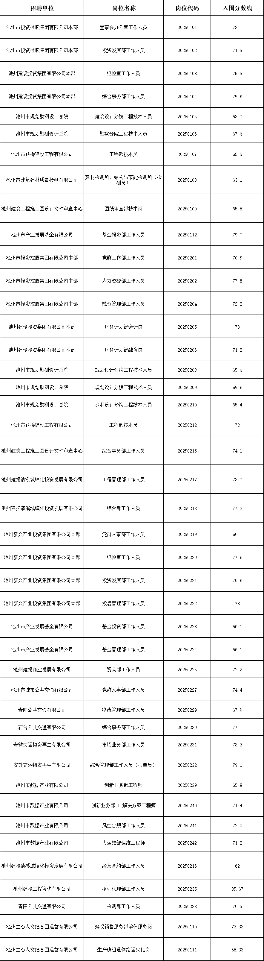根據(jù)《池州市投資控股集團(tuán)2025年公開(kāi)招聘工作人員公告》要求,公開(kāi)招聘筆試工作已結(jié)束,現(xiàn)將資格復(fù)審及面試相關(guān)事宜公告如下。