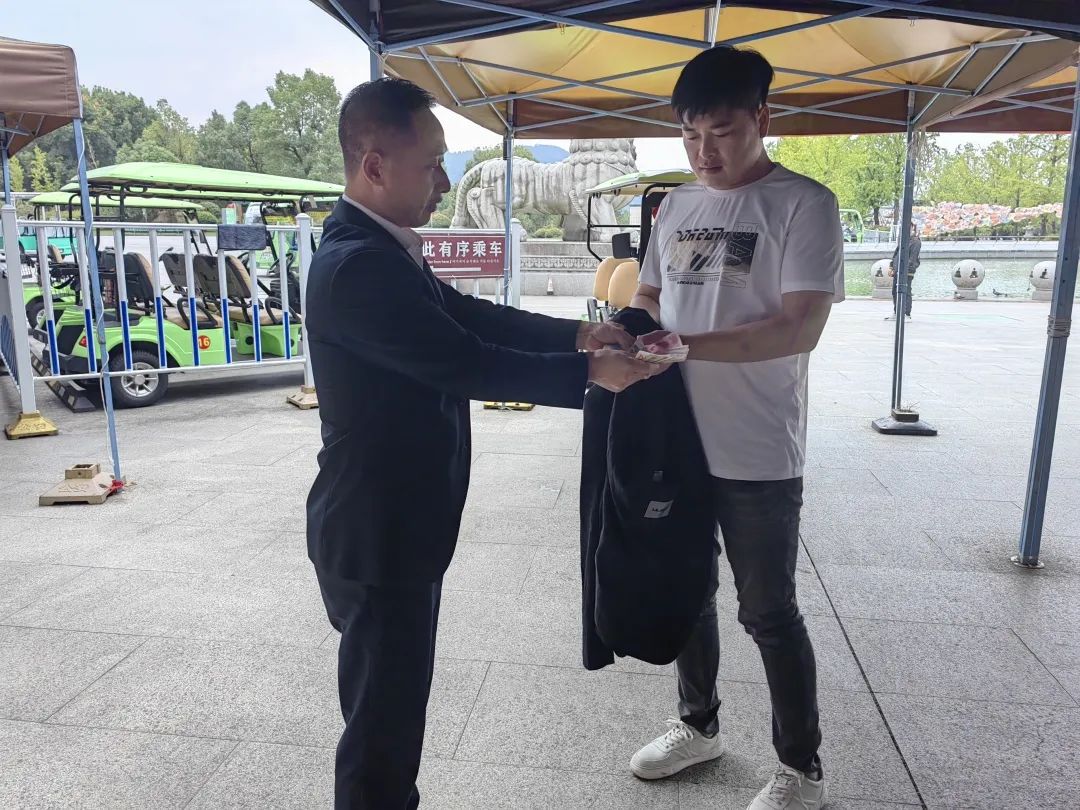 游客胡先生通過(guò)景區(qū)工作人員得知自己的外套在觀光車(chē)起點(diǎn)站,隨身物品保存完好,十分激動(dòng),收到衣物后連聲道謝。趙小平回應(yīng)稱(chēng):“在我們景區(qū),任何一位員工,拾到游客財(cái)物都會(huì)主動(dòng)歸還游客的。”